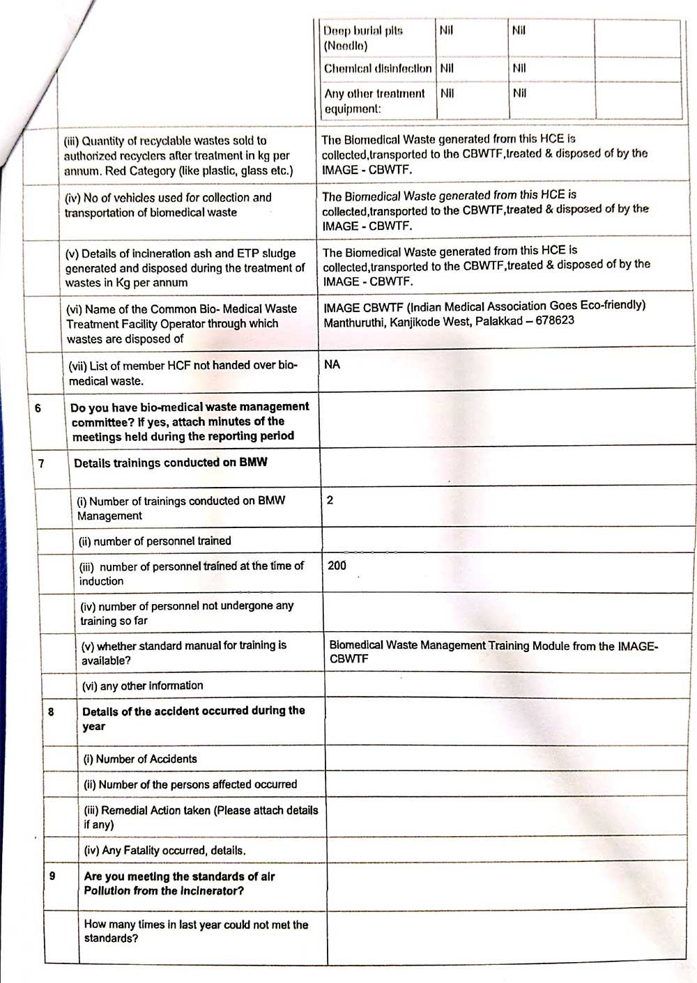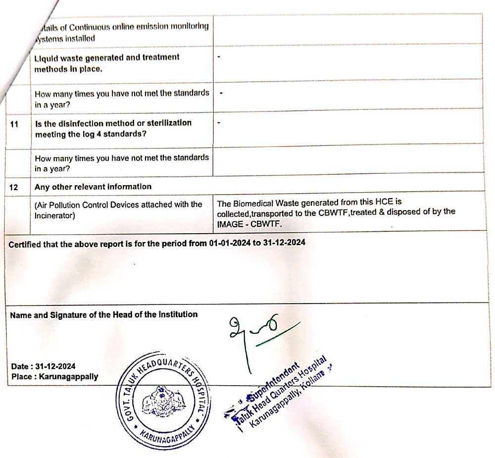 ബയോമെഡിക്കൽ വേസ്റ്റ് മാനേജ്‌മെന്റിന് കേരള സംസ്ഥാന മലിനീകരണ നിയന്ത്രണ ബോർഡിൽ നിന്നും ഹോസ്പ്പിറ്റലിന് ലഭിച്ച സർട്ടിഫിക്കറ്റ്.